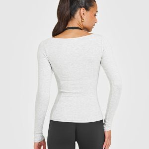 Mellow™ Rib V Neck Long Sleeve Top Black