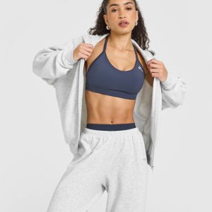 Mid Weight Zip Through Hoodie Light Grey Marl