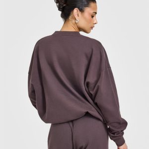 Mid Weight Sweatshirt With Printed Logo Umber Brown