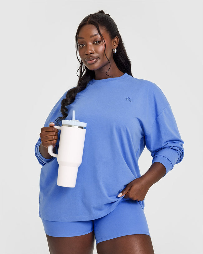 Classic Oversized Lightweight Long Sleeve Top Glaucous Blue