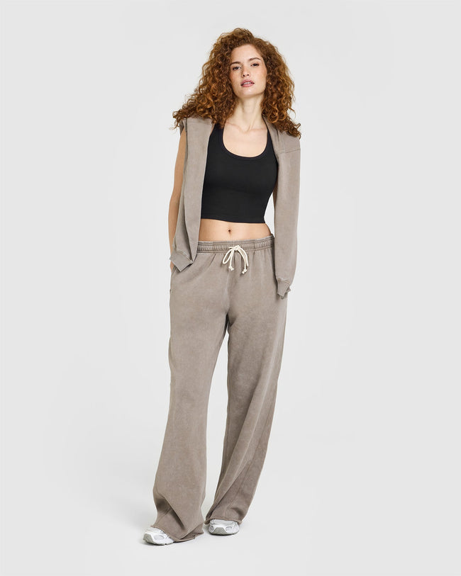 Oversized Piped Woven Straight Leg Track Bottoms Deep Umber Brown
