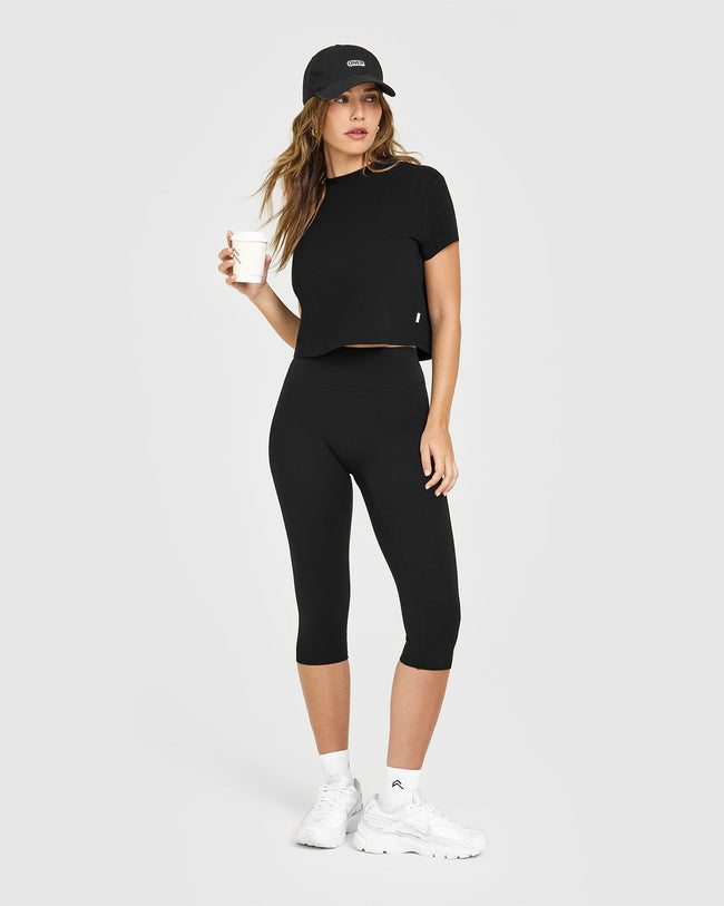 | Mid-crop cut with capped sleeves | |