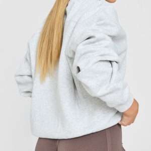 Foundations Oversized Hoodie With Large Printed Graphic Light Grey Marl