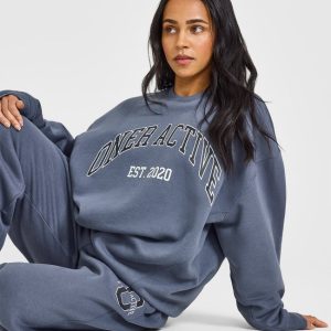 Foundations Oversized Sweatshirt With Large Printed Graphic Granite Blue