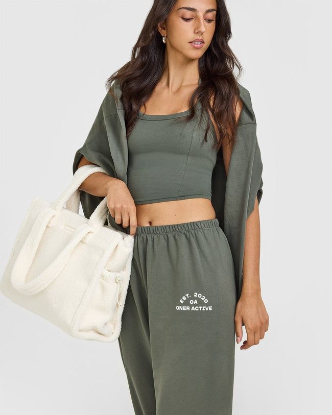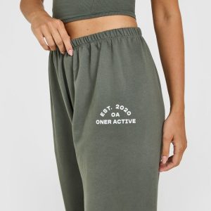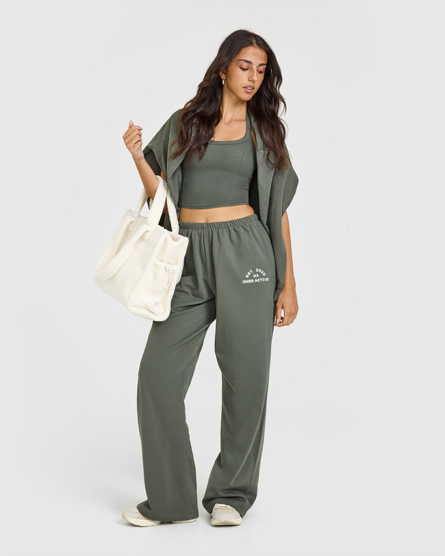 Lightweight Straight Leg Joggers with Graphic Dark Khaki