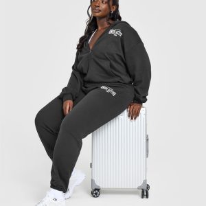 Lightweight Zip Through Hoodie With Athletic Graphic Soft Black