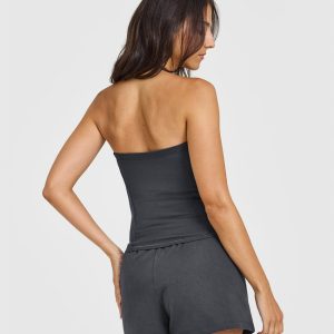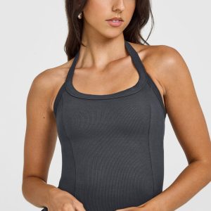 Mellow™ Rib Halter Neck Vest with Built in Bra Shelf Coal
