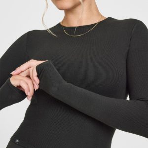 Mellow™ Rib Mid Long Sleeve Top Soft Black