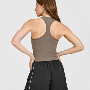 Mellow™ Rib Square Neck Mid Vest with Built in Bra Shelf Moss Brown