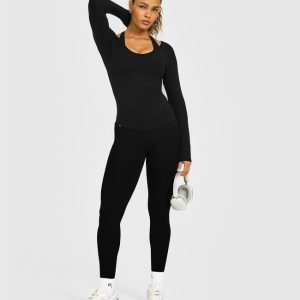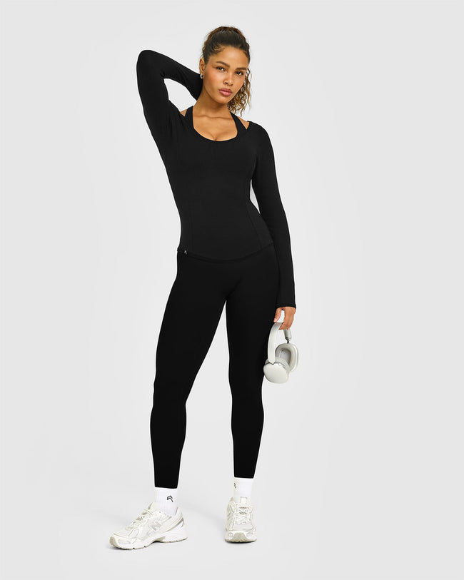 Mellow™ Rib V Neck Long Sleeve Top Black