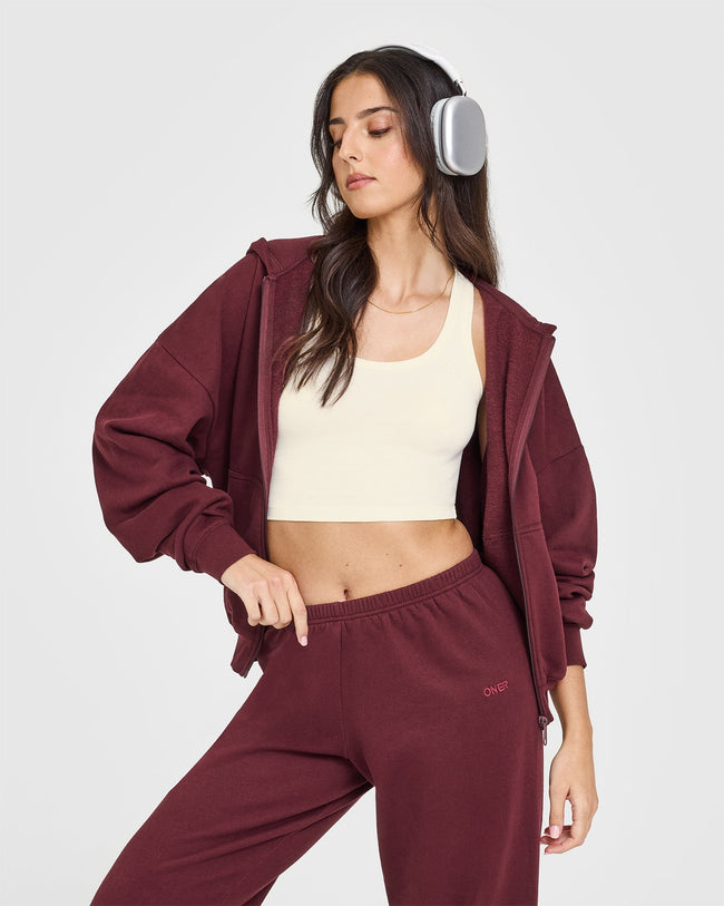 Oversized Piped Woven Straight Leg Track Bottoms Deep Umber Brown