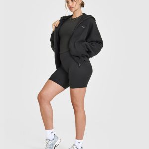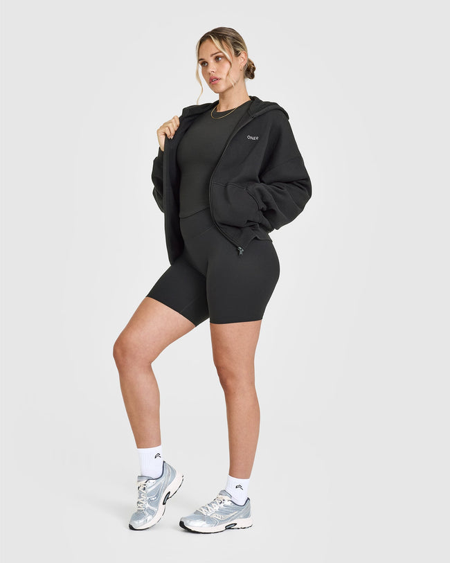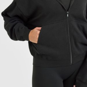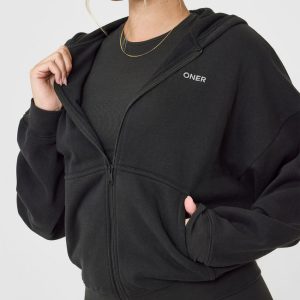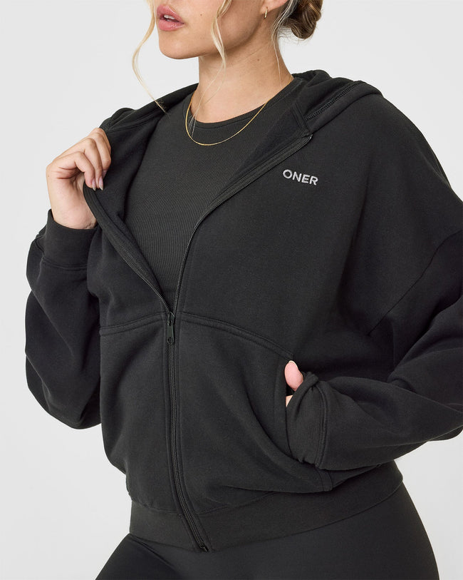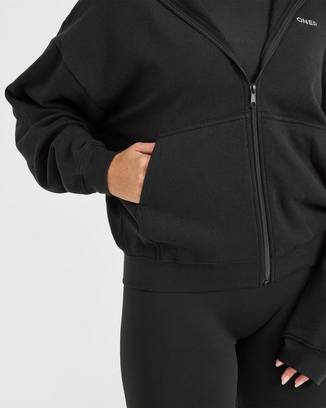Lightweight Zip Through Hoodie With Athletic Graphic Soft Black