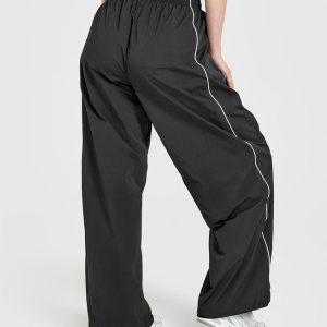 Oversized Piped Woven Straight Leg Track Bottoms Soft Black