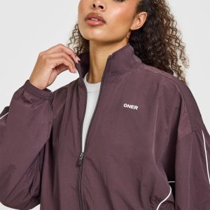 Oversized Piped Woven Track Jacket Deep Umber Brown