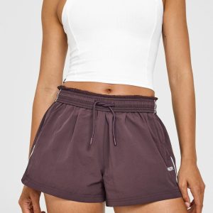 Oversized Piped Woven Track Shorts Deep Umber Brown